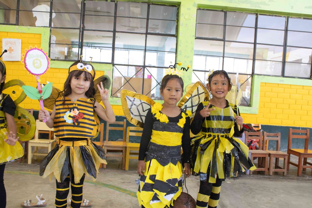 Como parte de esta celebración, organizamos un concurso de disfraces hechos con materiales reciclados, donde cada niño se convirtió en una adorable abejita, luciendo trajes coloridos y creativos, todos hechos con cartón, papel, botellas y otros elementos reutilizados. La búsqueda de “la abejita más linda” llenó de alegría el ambiente y nos dejó momentos inolvidables, recordándonos que la educación ambiental puede ser tan divertida como poderosa.