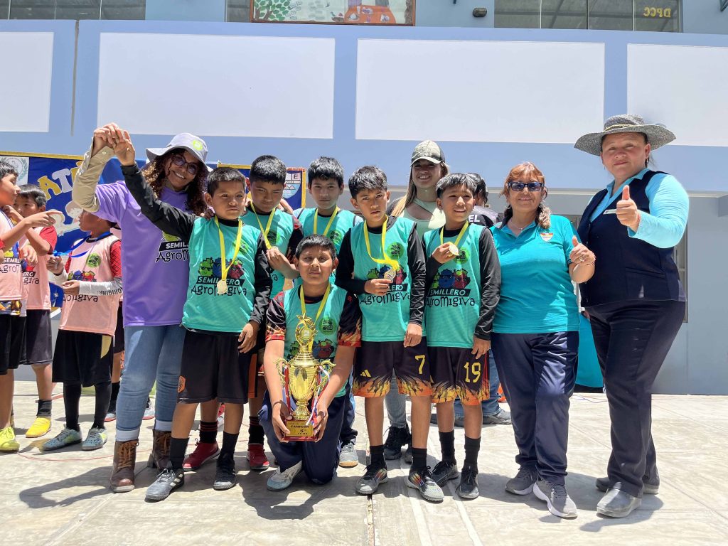 On Wednesday, November 26, the AgroMIGIVA Youth League took place at I.E. 22333 General Juan José Salas Bernales, located in the town of Santa Cruz de Villacurí. More than 150 children participated in this mini soccer tournament, an initiative that promotes sports, camaraderie, and values such as discipline and teamwork.